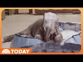Vomiting from exhaustion. Must be in a lot of pain. He was biting the wire cage.